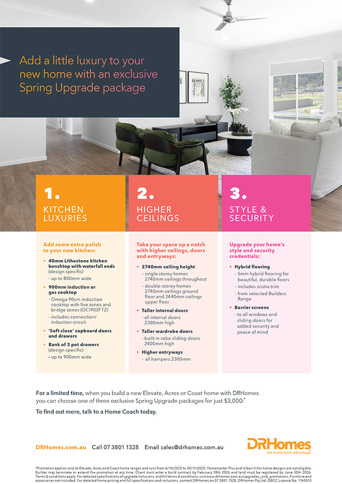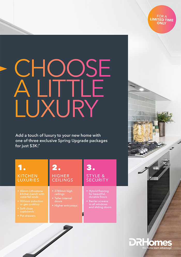 For a limited time, when you build a new Elevate, Acres or Coast home with DRHomes you can choose one of the three exclusive Spring Upgrade packages for just $3,000*