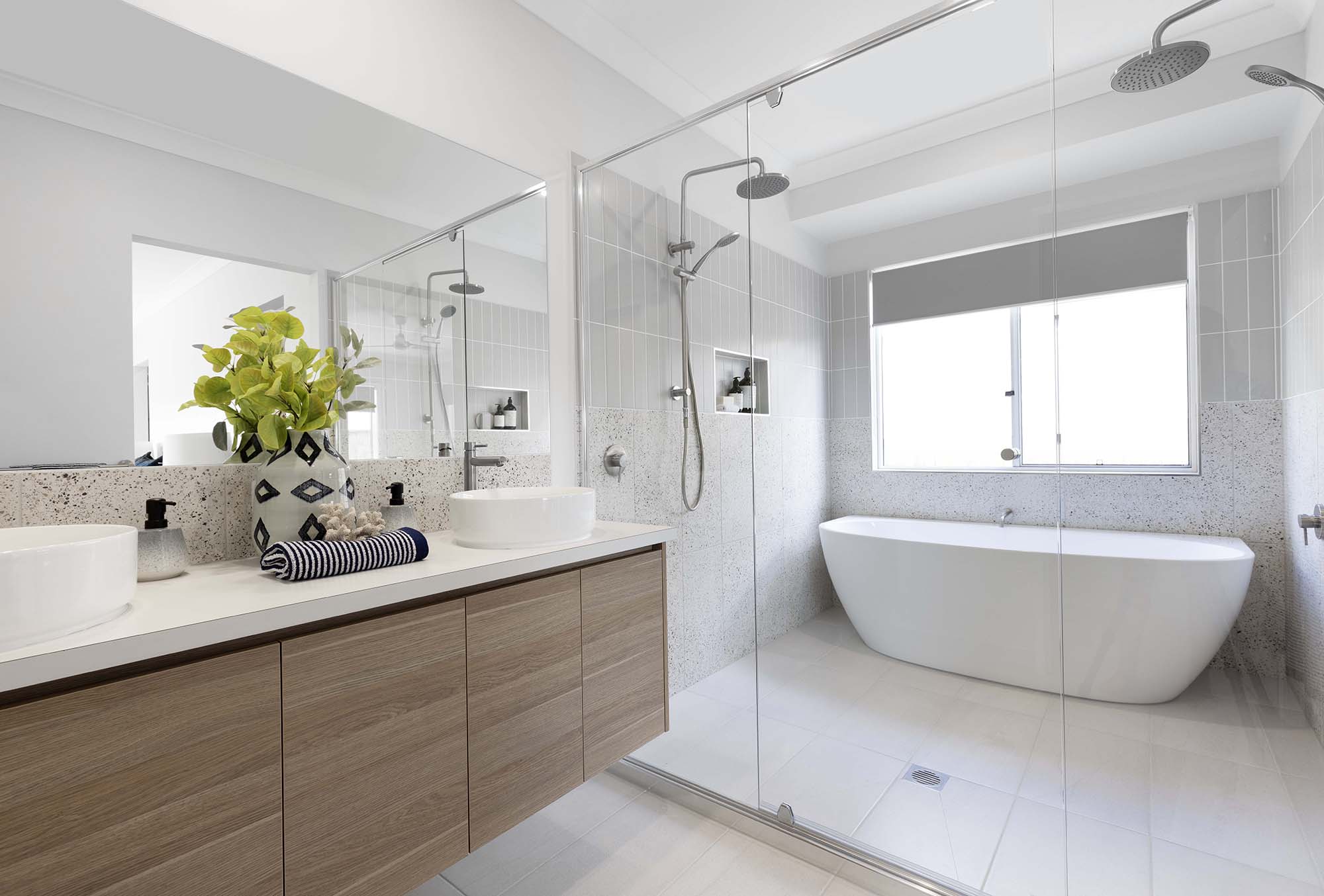 The ensuite in the Whitehaven 30, is well luxurious, with a free-standing tub in a wet room, double shower with tiled niches, this list goes on.